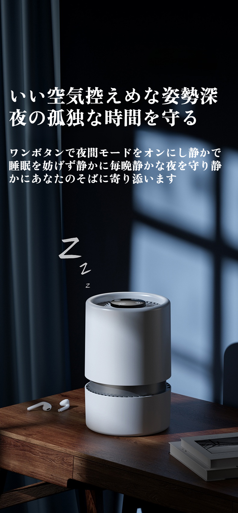 極静音設計の空気清浄機使用イメージ