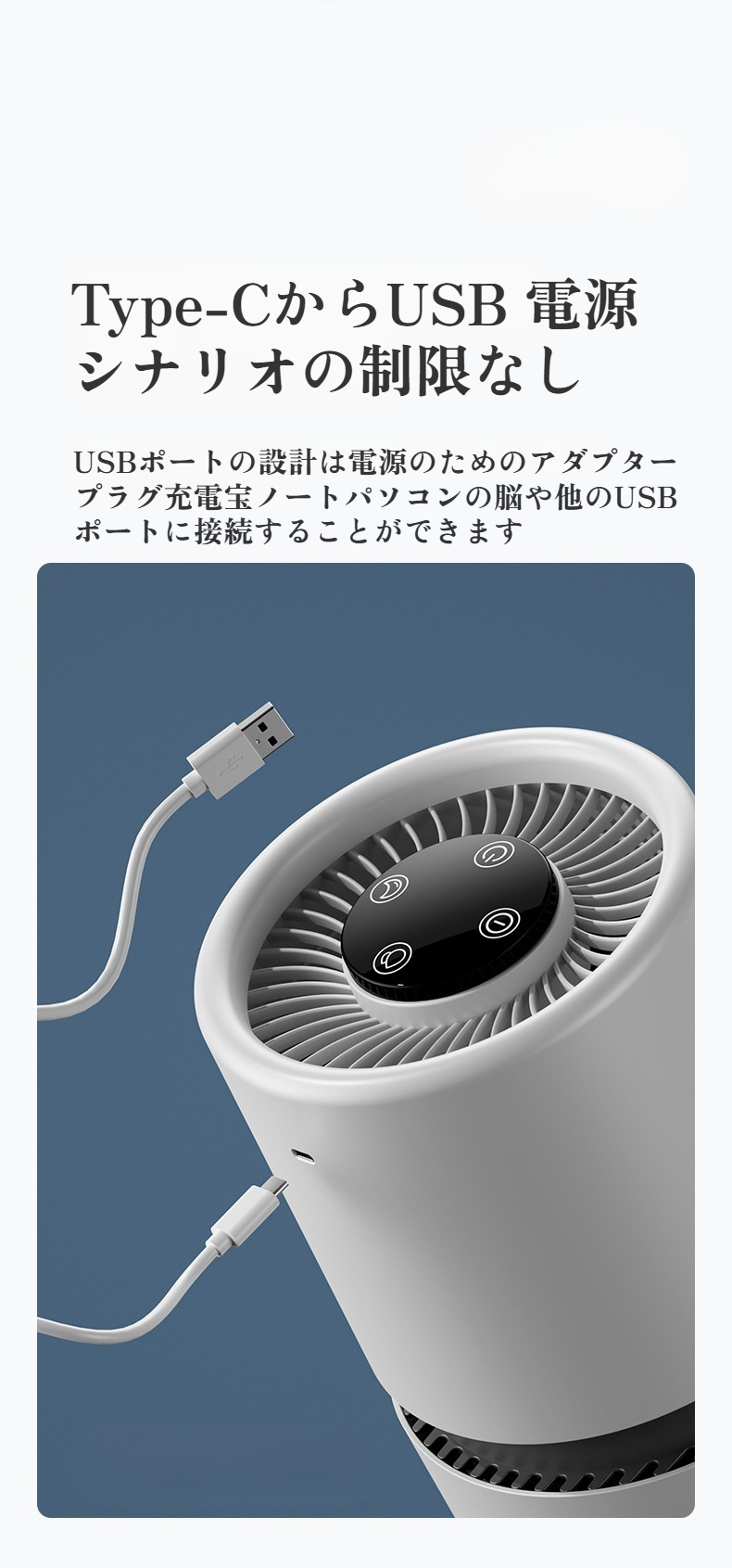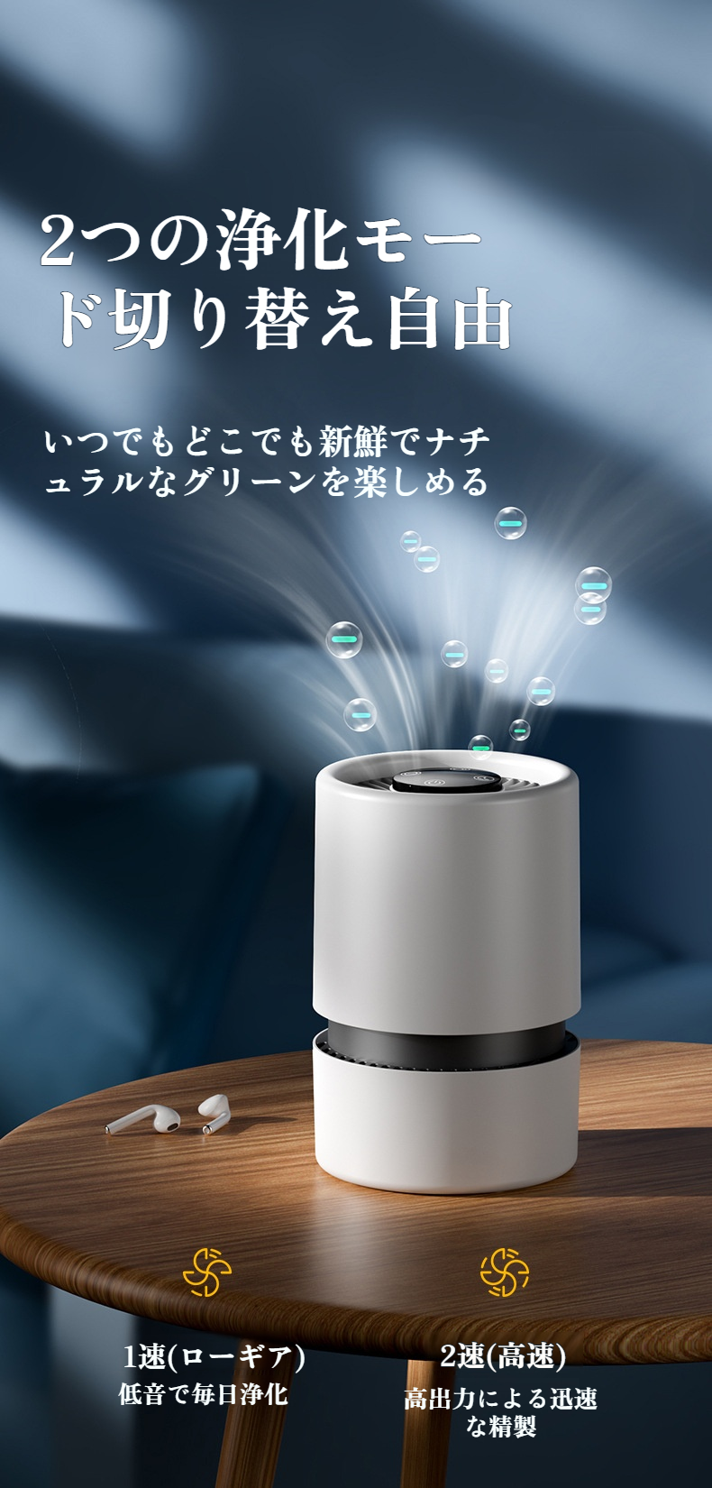 2024年革新版フィルター搭載小型空気清浄機の外観